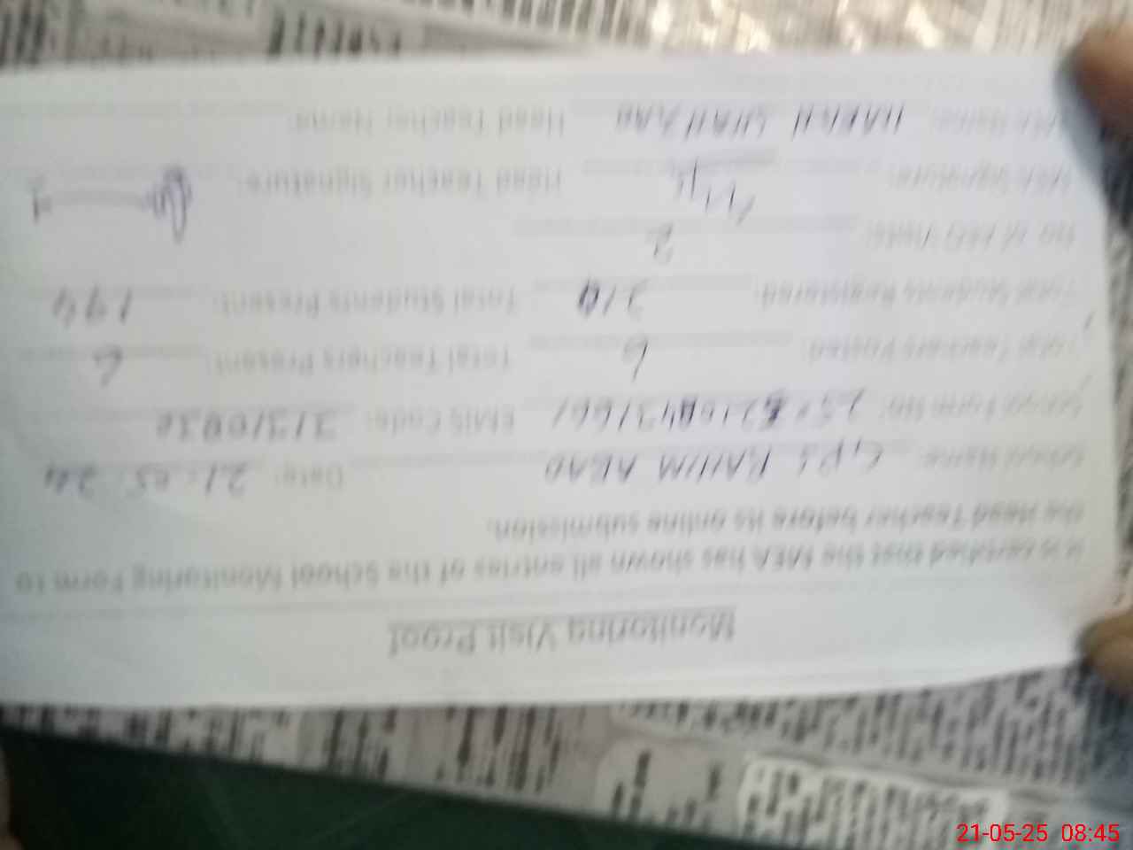 | Attendance Register | Head Teacher | MEA with School | Visit Proof |