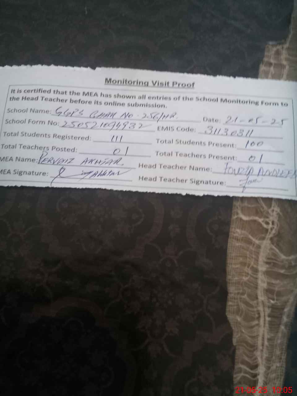 | EMIS Code: 31130311 | Name of School: GGPS CHAK NO 256/HR | |||