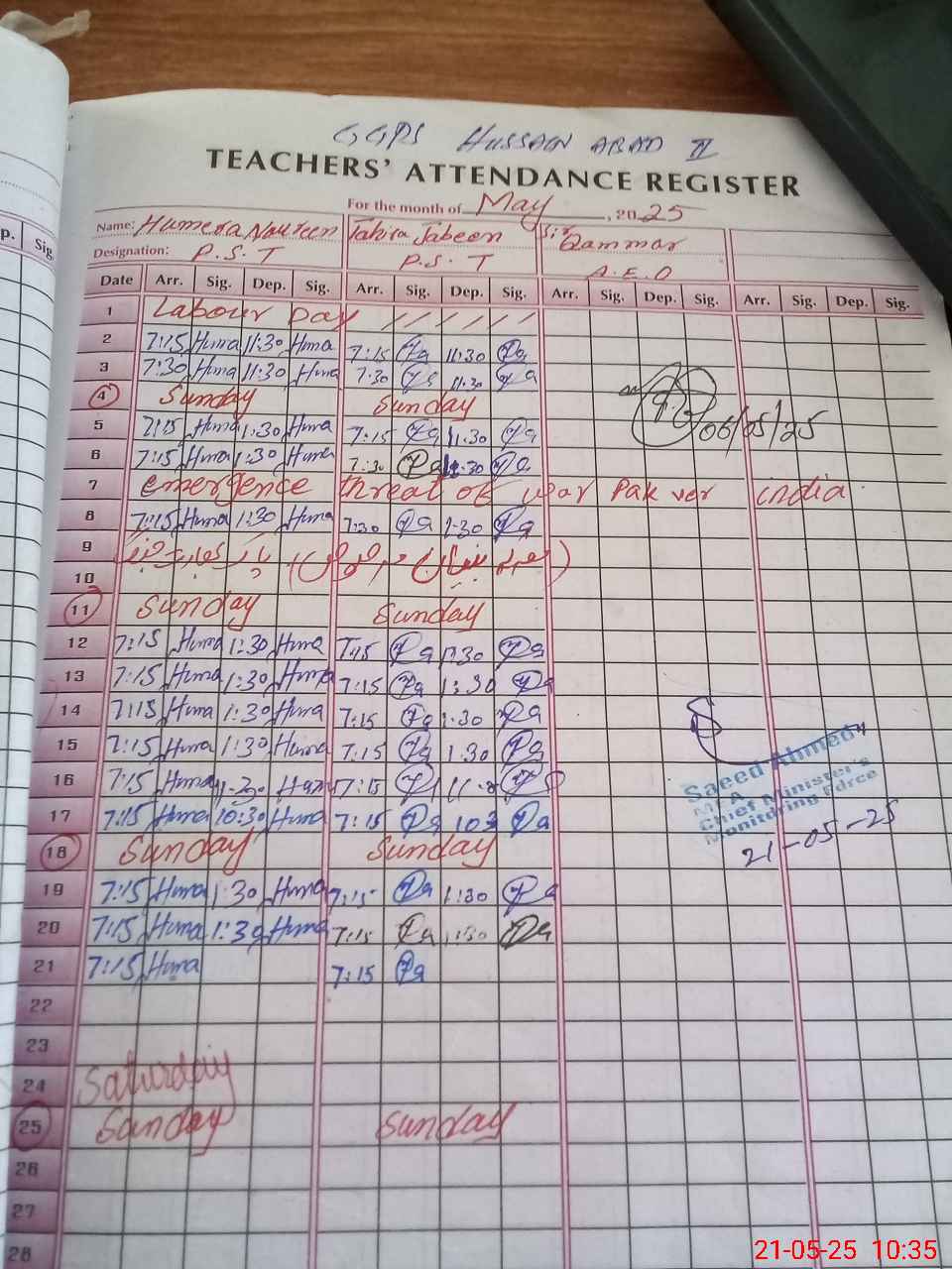 | Name: HU**** NO**** Designation: (School Headmaster's/Headmistress's) PST Phone/Cell Number: 03**** |