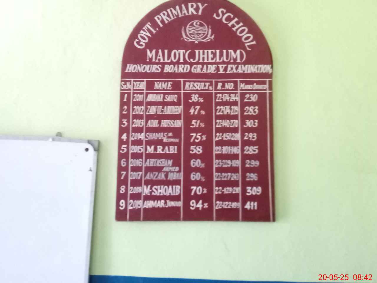 | District: JHELUM | Tehsil: DINA | Markaz: MADU KALAS - MALE | Level: Primary | |