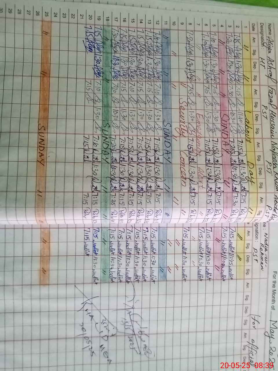 | CNIC | Full Name | Designation | R/C | Absence During Last Calender Month |