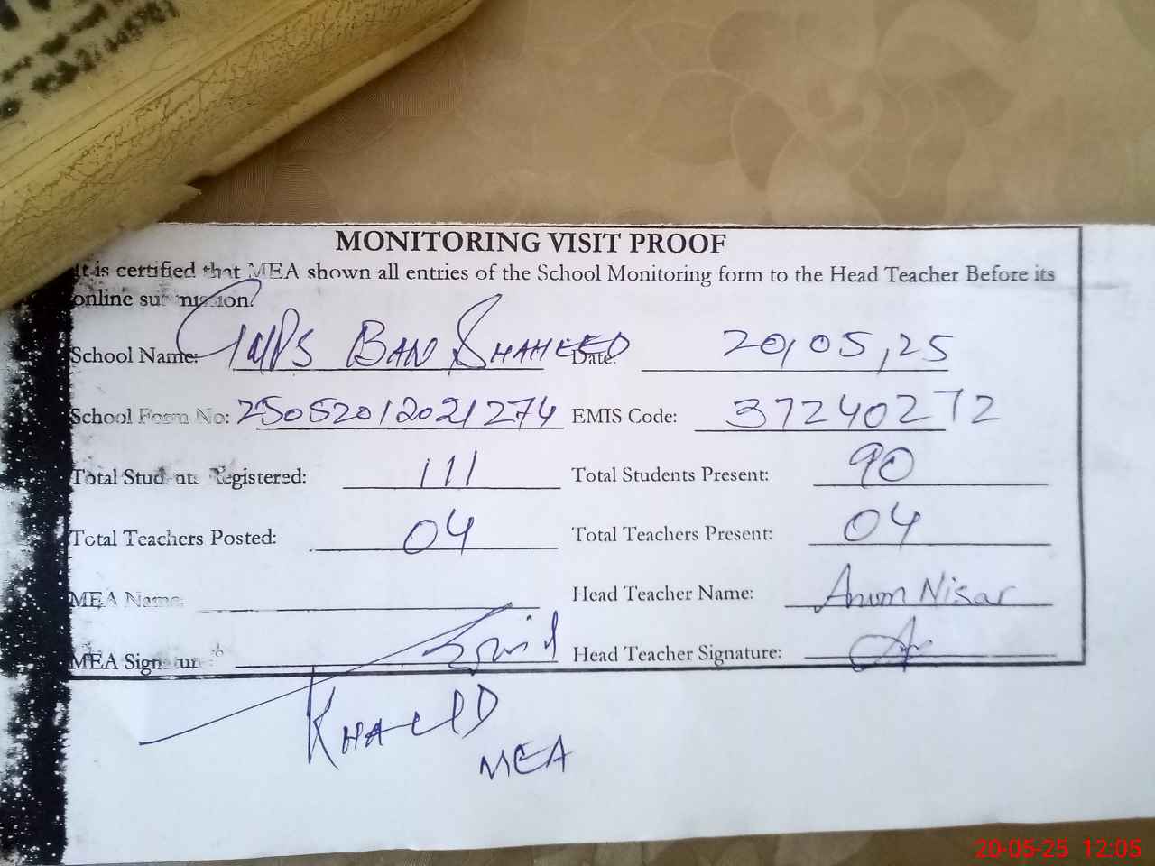 | EMIS Code: 37240272 | Name of School: GMPS BAN SHAHEED | |||