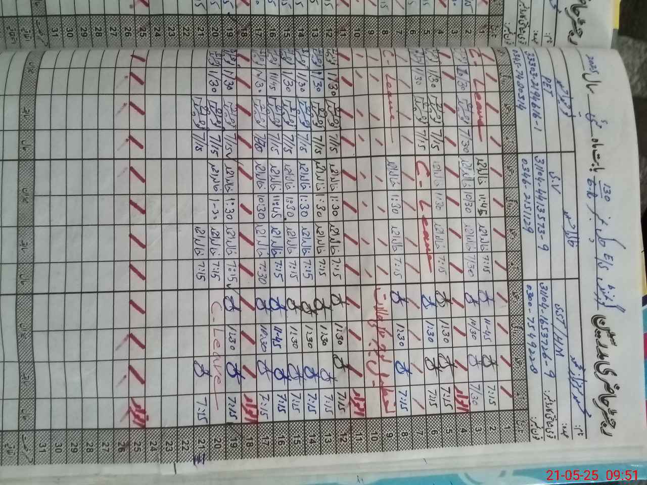 | CNIC | Full Name | Designation | R/C | Absence during last cal. month |