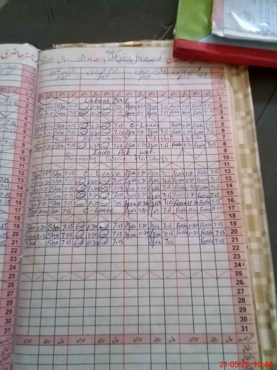 | Leave | Duty | Absent | Maternity | Medical | Ex- Pak |