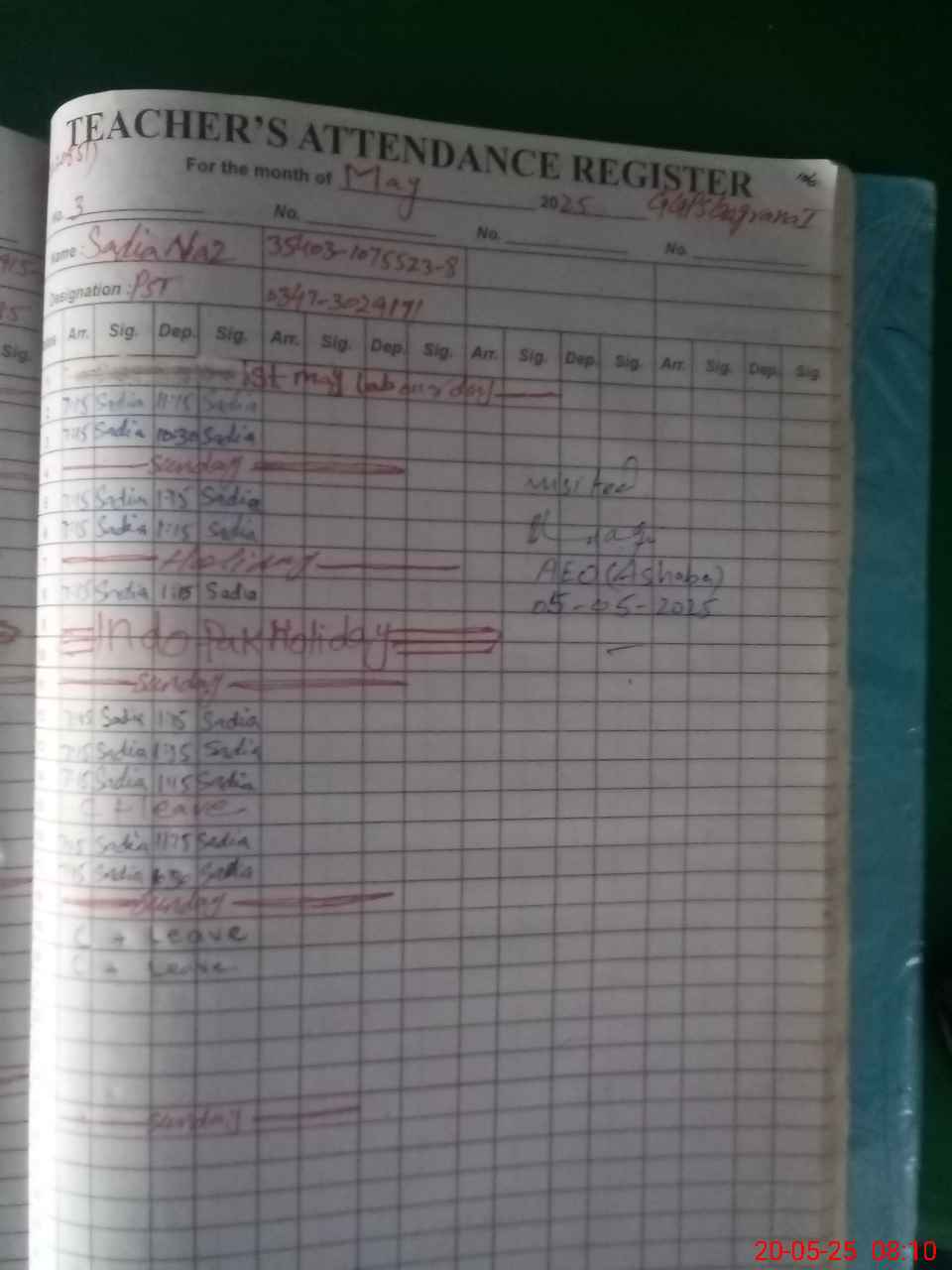 | Name: Sh**** Pe**** Designation: (School Headmaster's/Headmistress's) PST Phone/Cell Number: 03**** |