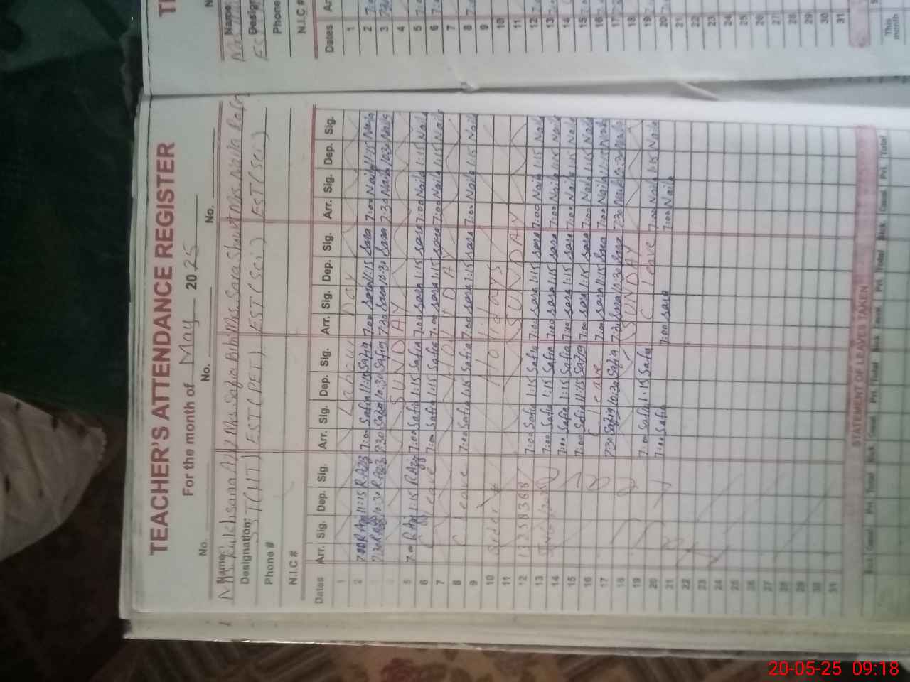 | 38**** | Sa**** Sh**** | PST | Regular | 2 | 0 | 0 | 0 | 0 | 0 | 0 | 0 | 2 | Casual |