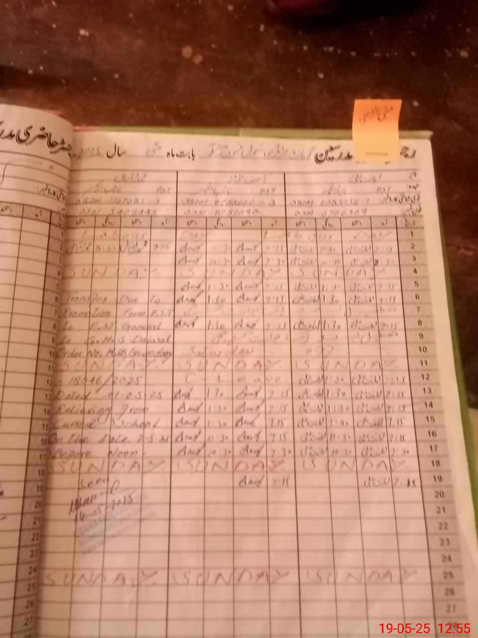 | CNIC | Full Name | Designation | R/C | Absence During Last Calender Month |