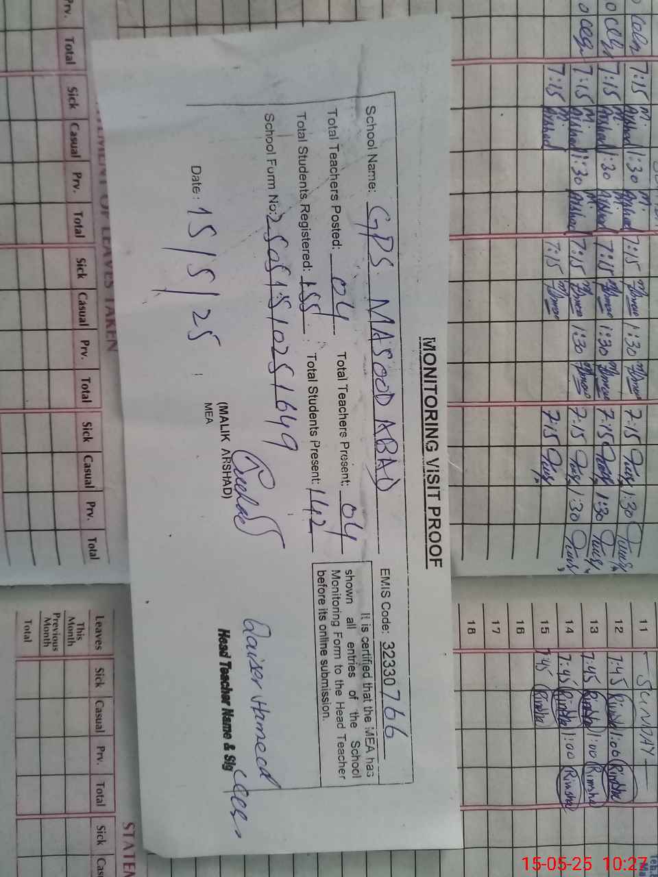 | EMIS Code: 32330766 | Name of School: GPS MASOOD ABAD | |||