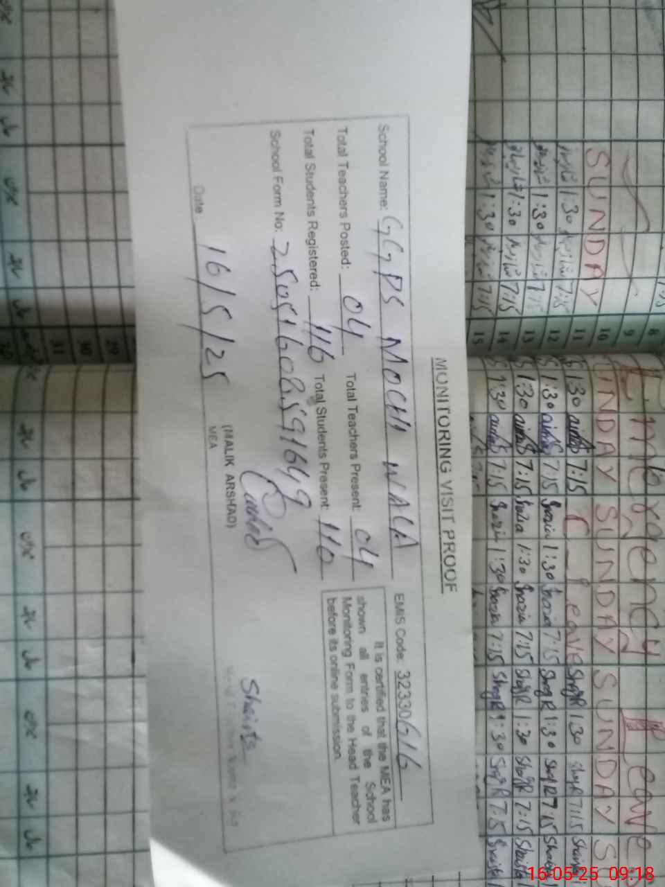 | EMIS Code: 32330616 | Name of School: GGPS MACHI WALA | |||