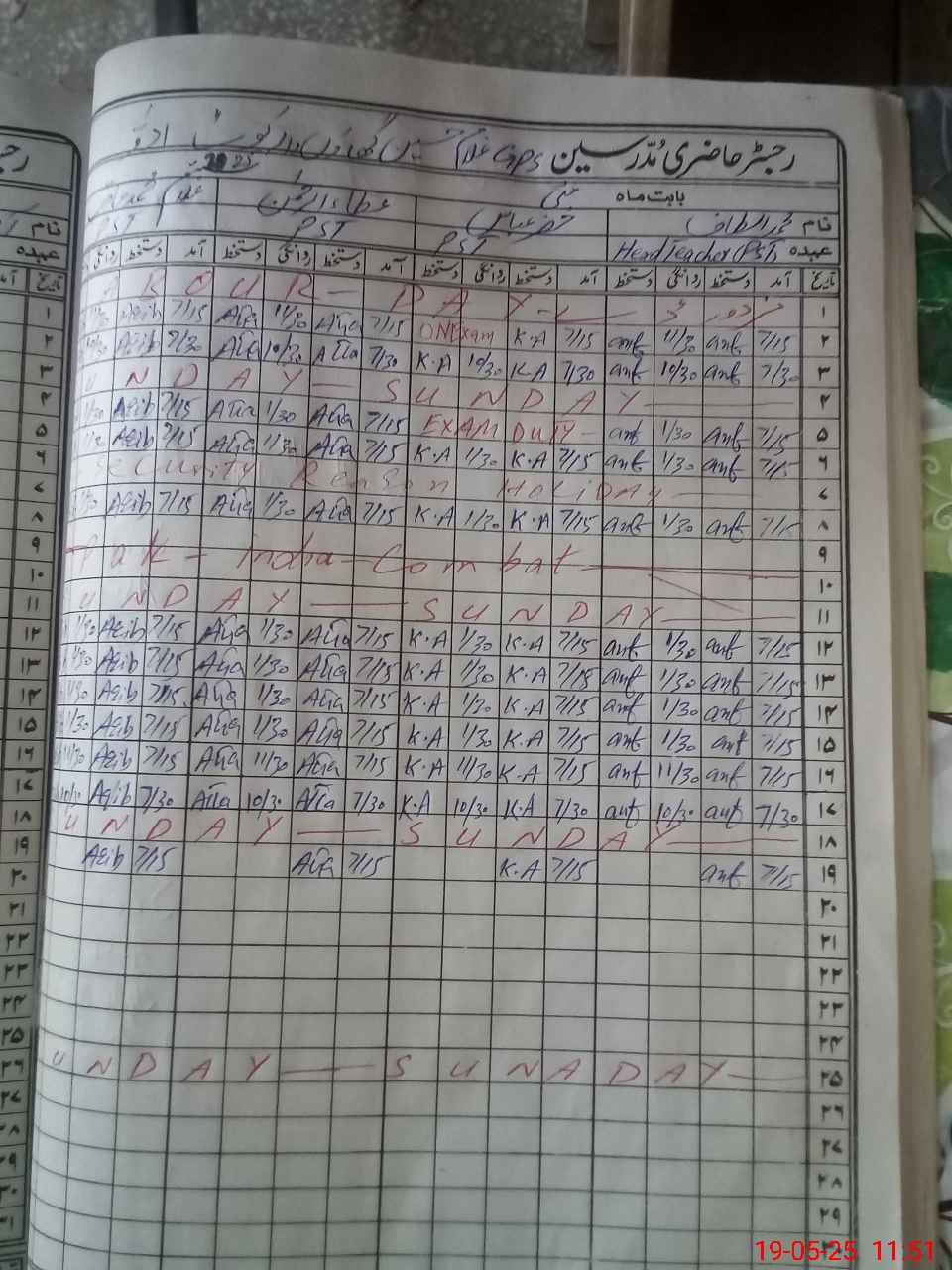 | CNIC | Full Name | Designation | R/C | Absence During Last Calender Month |