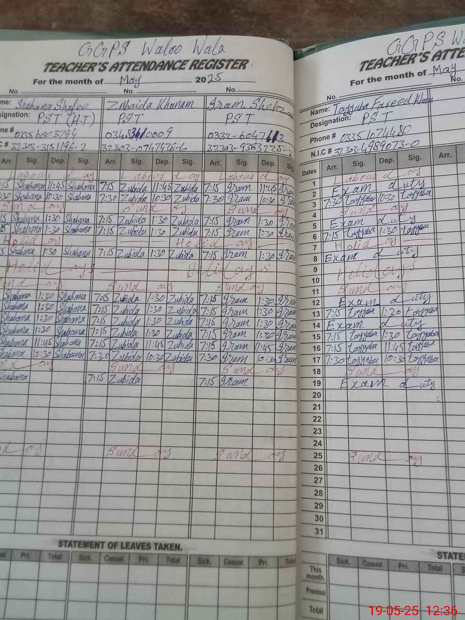 | 32**** | Ta**** Fa**** Kh**** | 1 | 1 | 0 | 0 | 0 | 0 | 0 | 0 | 0 | 0 | 0 | Exam Duty |