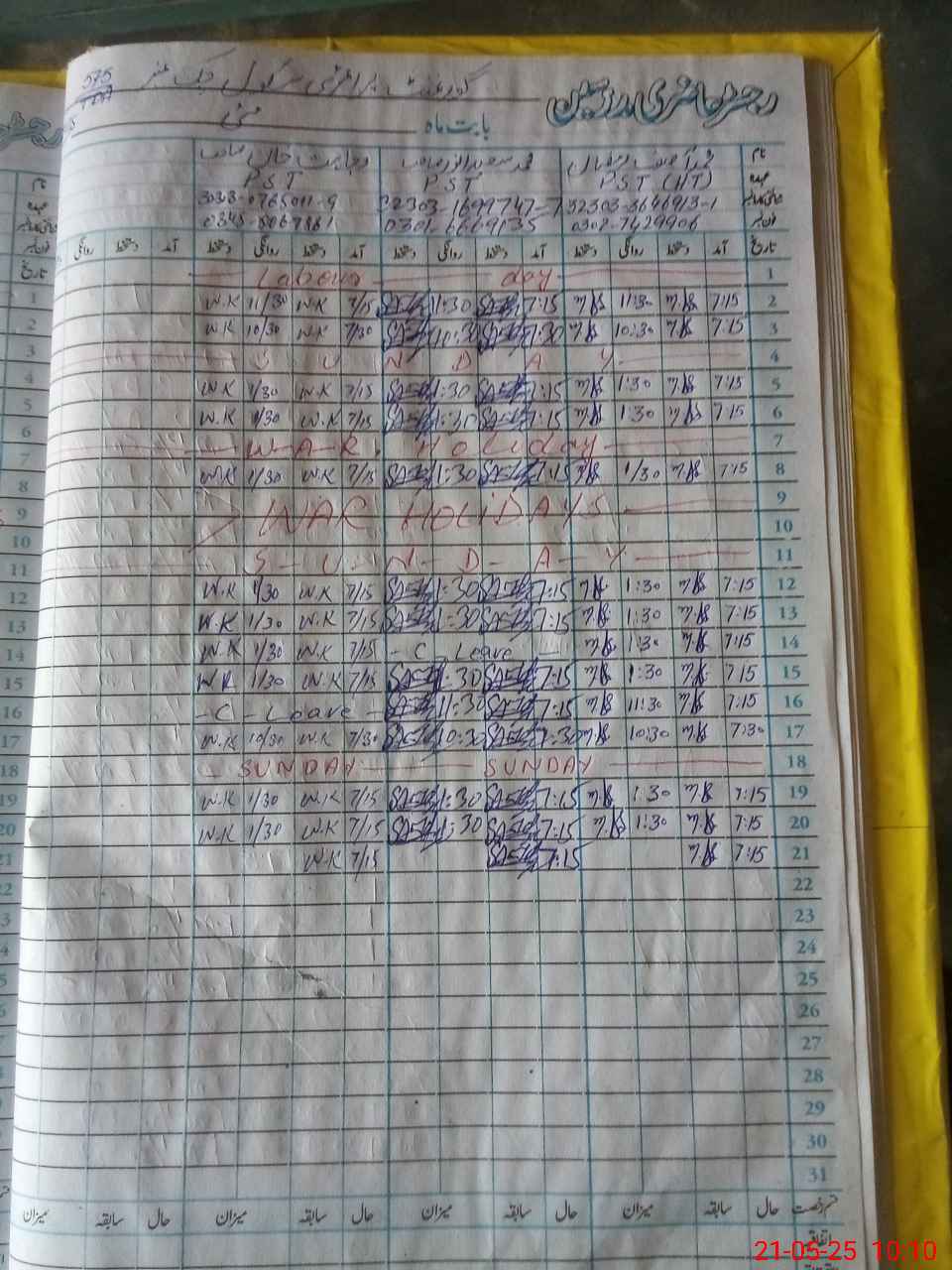 | CNIC | Full Name | Designation | R/C | Absence During Last Calender Month |