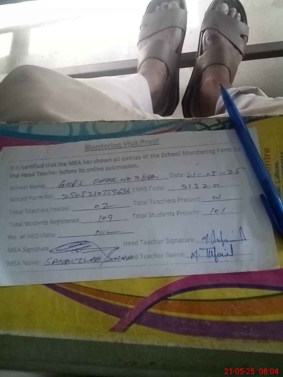 | Attendance Register | Head Teacher | MEA with School | Visit Proof |