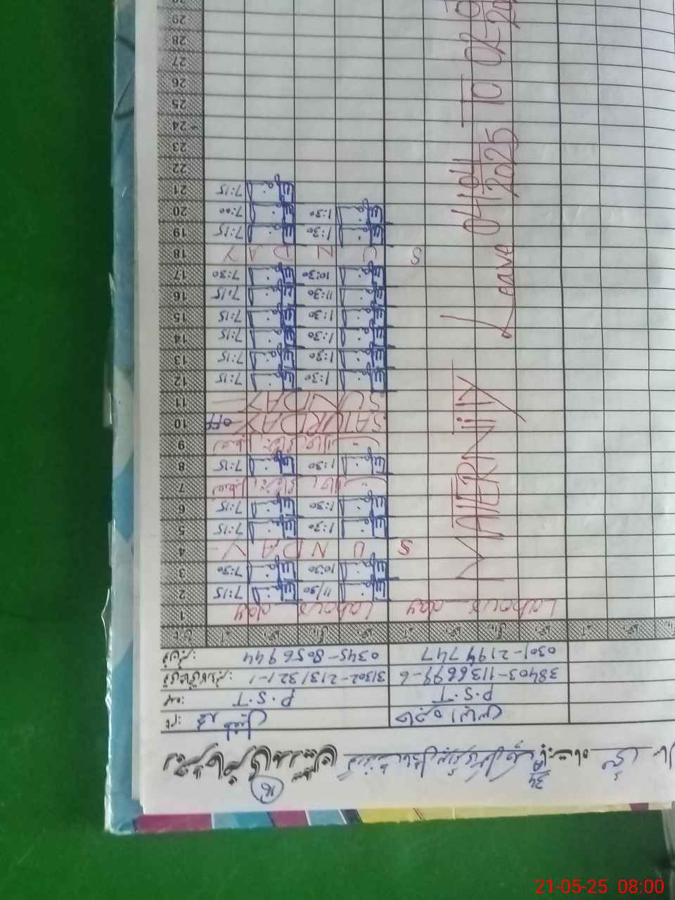 | Leave | Duty | Absent | Maternity | Medical | Ex- Pak |