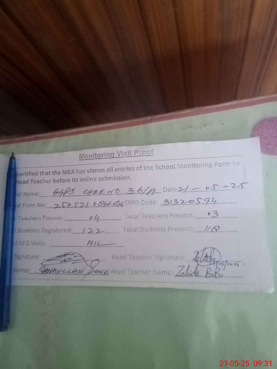 | EMIS Code: 31320594 | Name of School: GGPS CHAK 36/A | |||