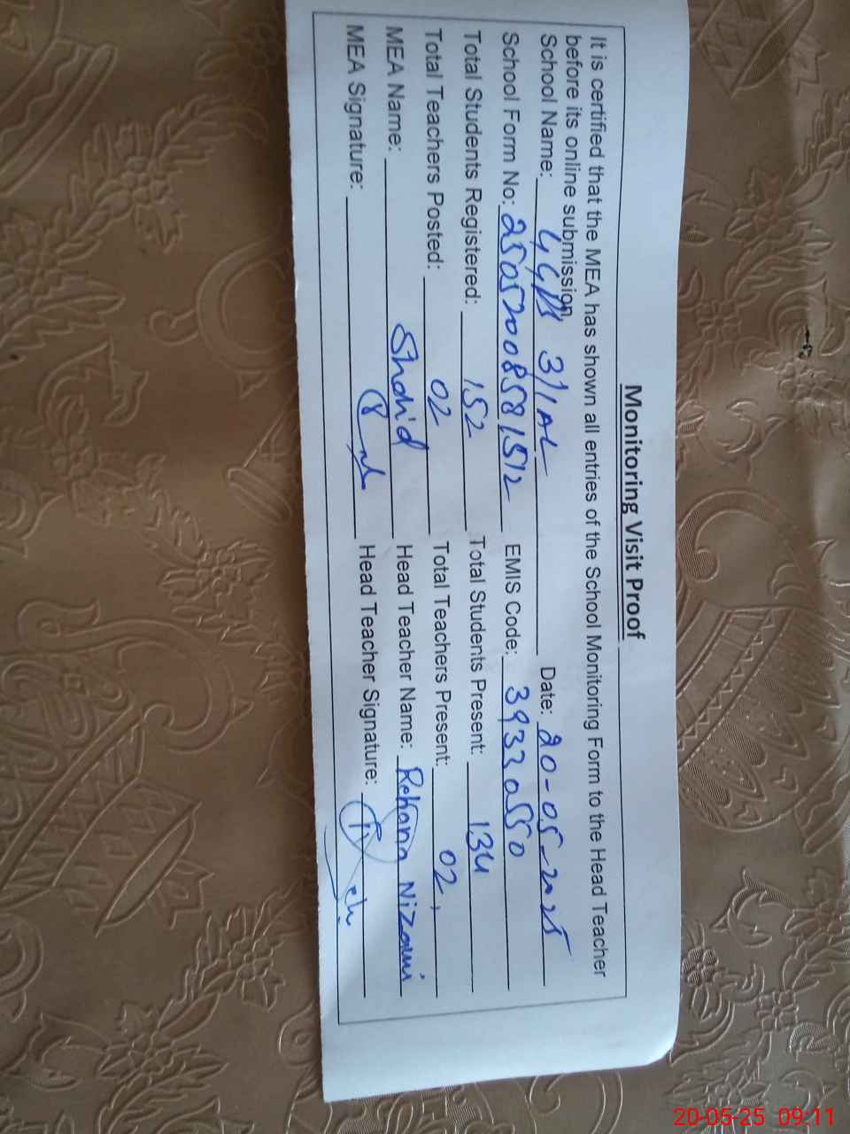 | Certified that this School was Inspected by the Undersigned MEA/DMO Today and the Information Stated Above is as Per Record. | |||||