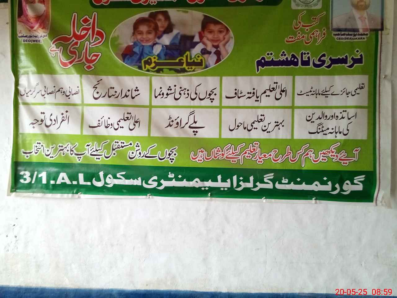 | District: OKARA | Tehsil: RENALA KHURD | Markaz: AKHTAR ABAD - FEMALE | Level: Primary | |