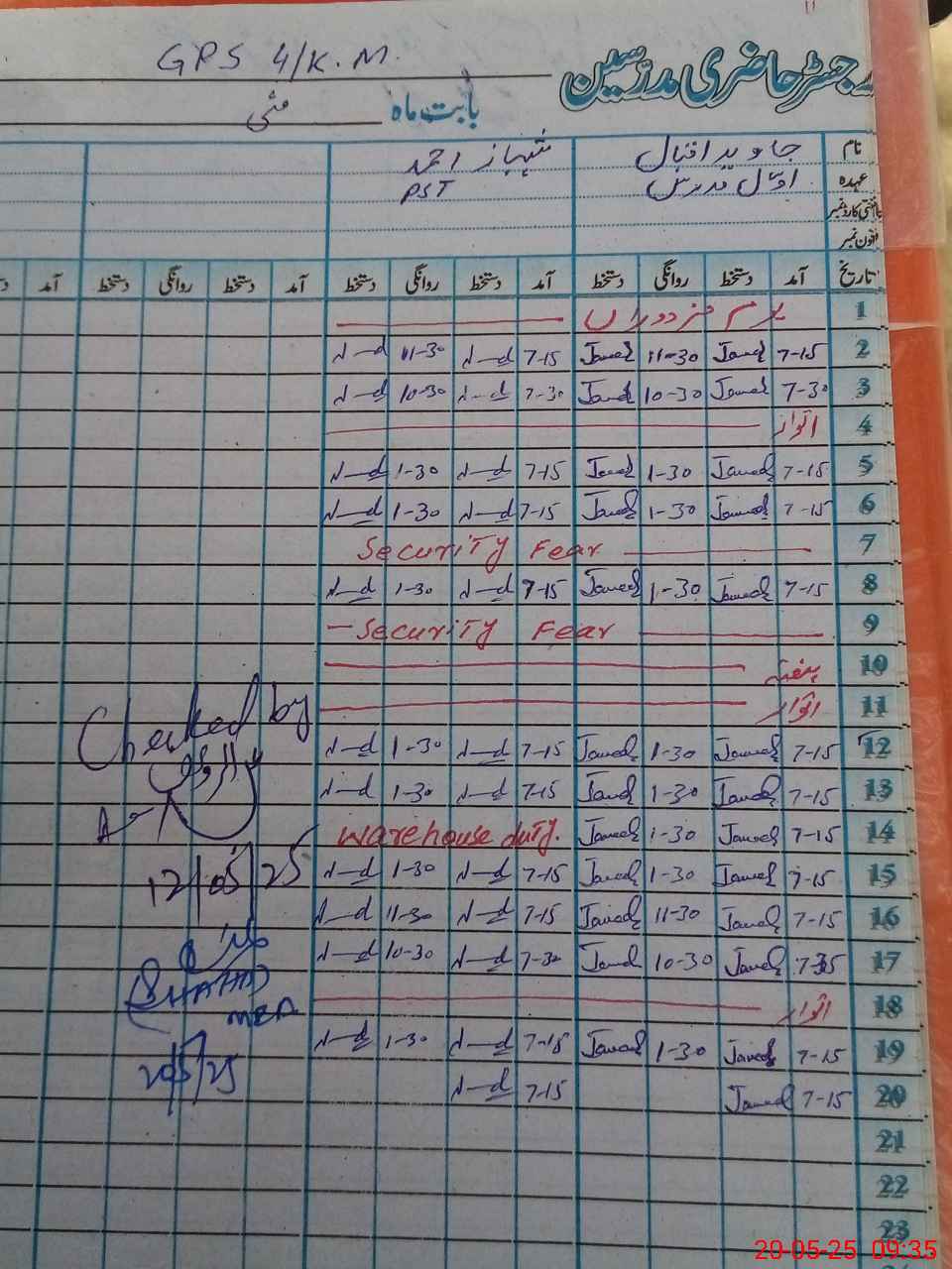 | CNIC | Full Name | Designation | R/C | Absence During Last Calender Month |