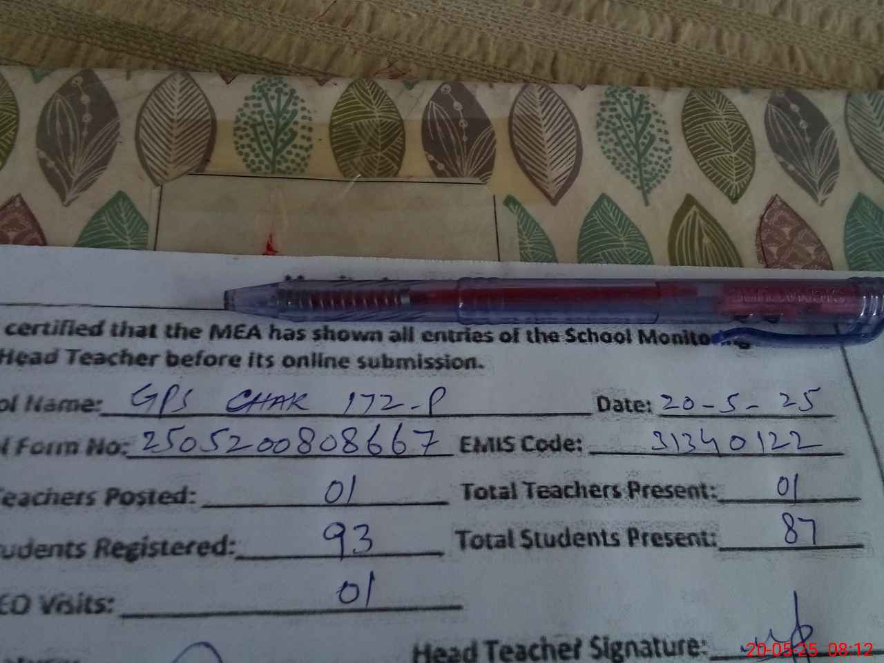 | EMIS Code: 31340122 | Name of School: GPS CHAK NO 172/P | |||