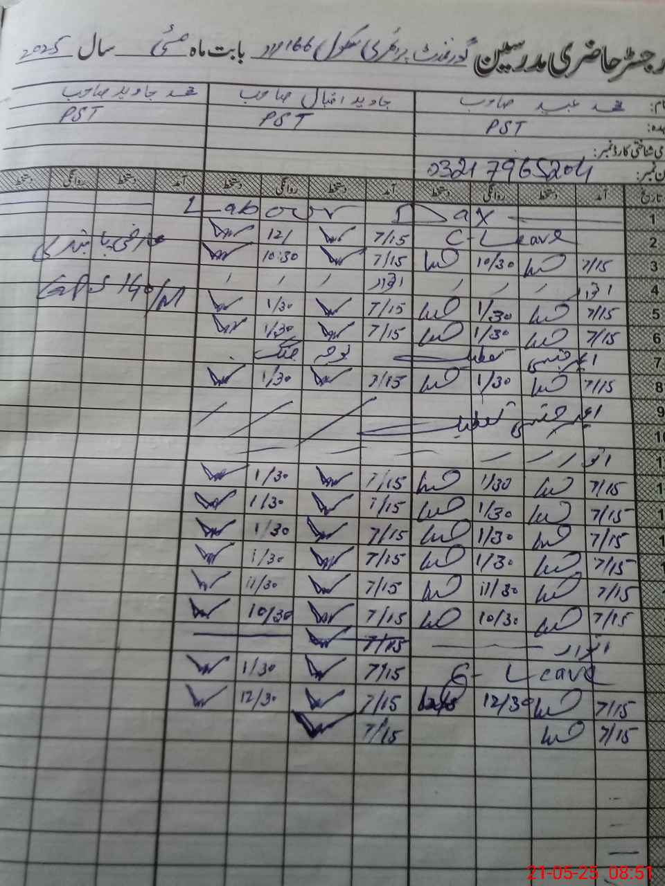 | Name: MU**** UB**** Designation: (School Headmaster's/Headmistress's) PST Arts Phone/Cell Number: 03**** |