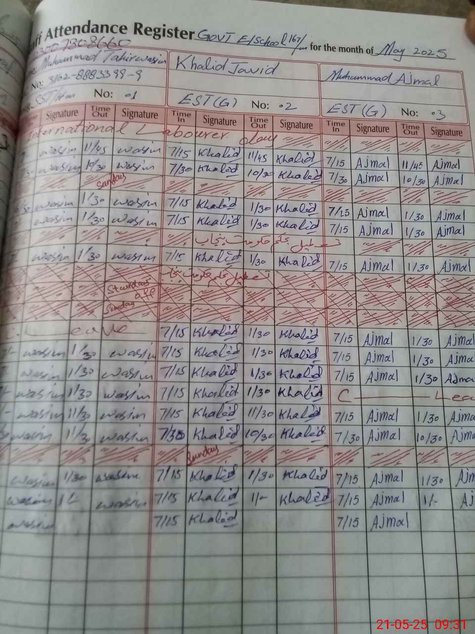 | CNIC | Full Name | Designation | R/C | Absence During Last Calender Month |