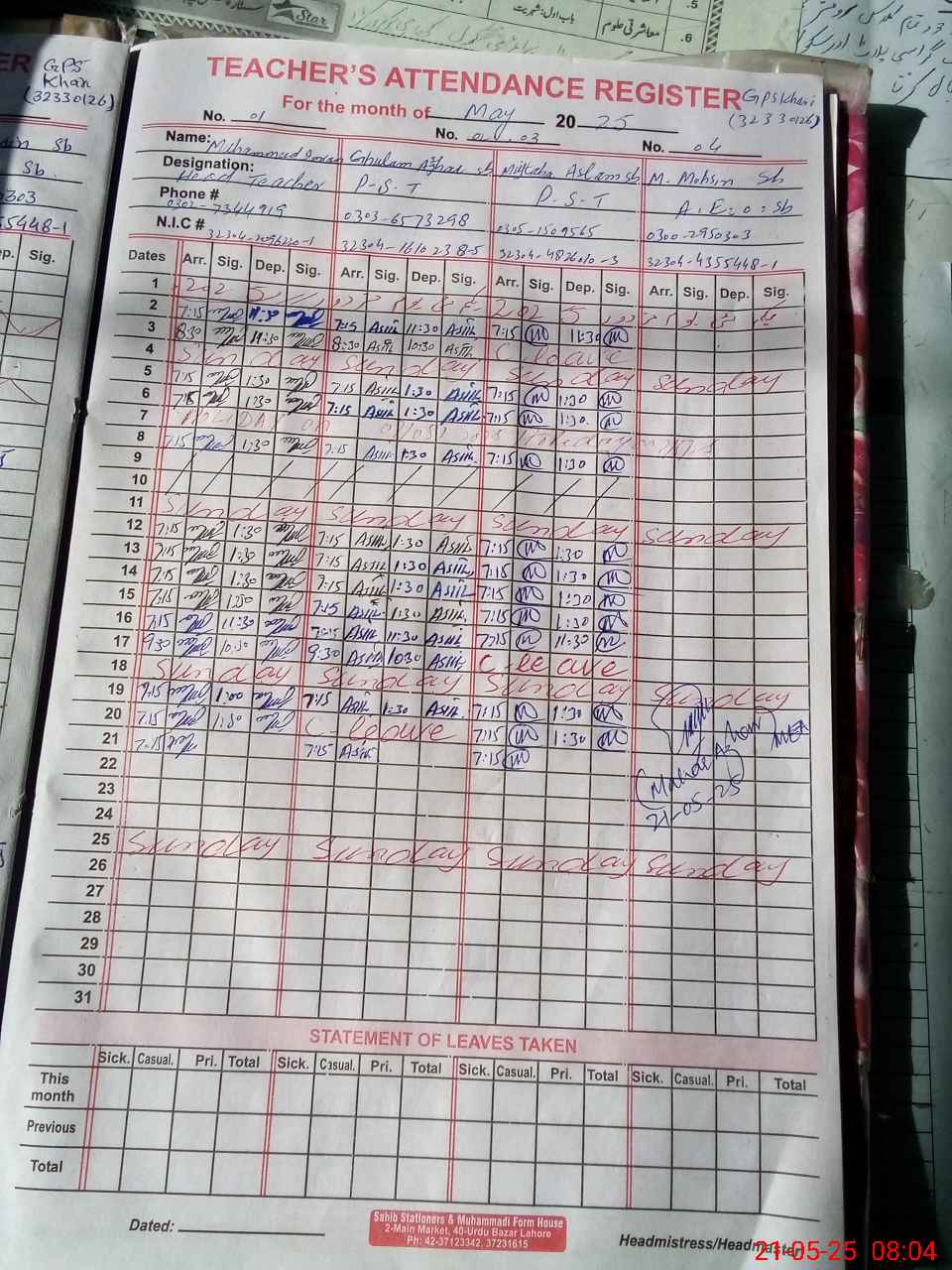 | Name: Mu**** IM**** Designation: (School Headmaster's/Headmistress's) PST Phone/Cell Number: 03**** |