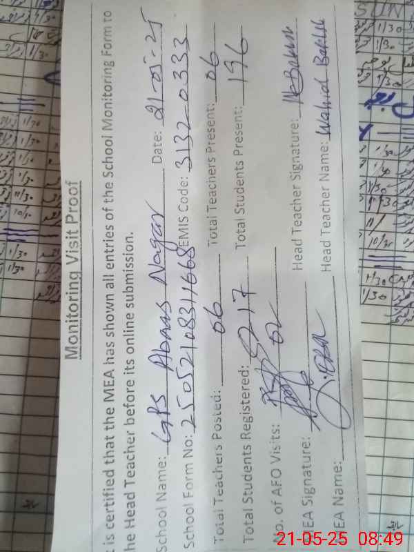 | EMIS Code: 31320333 | Name of School: GPS ABAAS NAGAR | |||