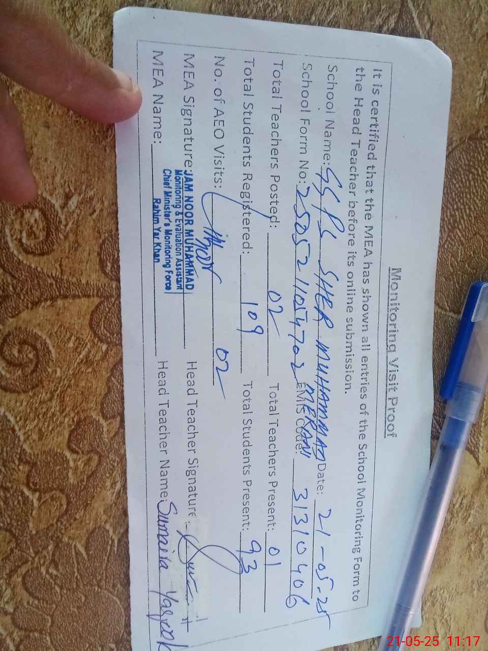 | EMIS Code: 31310406 | Name of School: GGPS SHER MUHAMMAD MIRANI | |||