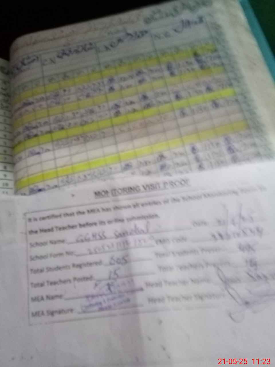 | Attendance Register | Head Teacher | MEA with School | Visit Proof |