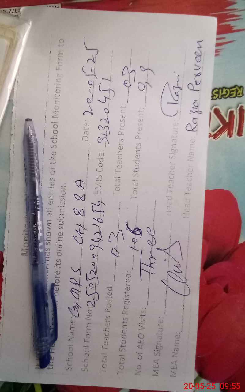| Name: RA**** PA**** Designation: (School Headmaster's/Headmistress's) PST Phone/Cell Number: 03**** |