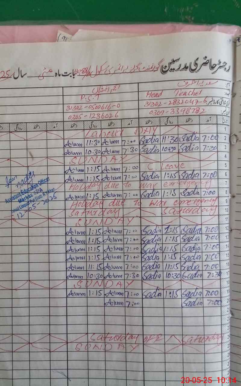 | Name: Sa**** As**** Designation: (School Headmaster's/Headmistress's) PST Phone/Cell Number: 03**** |