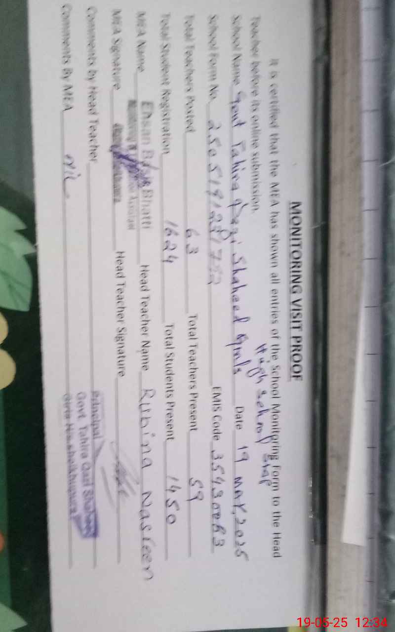| EMIS Code: 35430083 | Name of School: GOVT. TAHIRA QAZI SHAHEED GIRLS HIGH SCHOOL SHEIKHUPURA | |||
