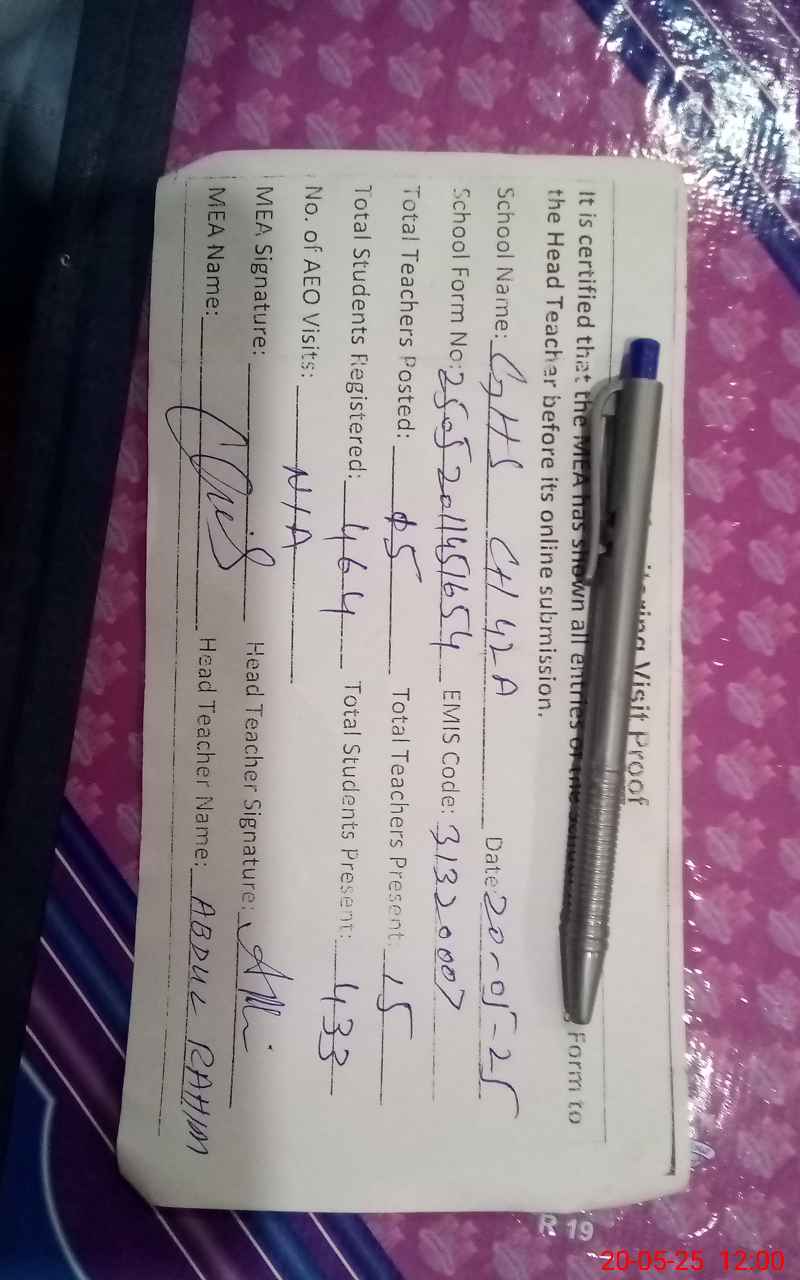 | Attendance Register | Head Teacher | MEA with School | Visit Proof |