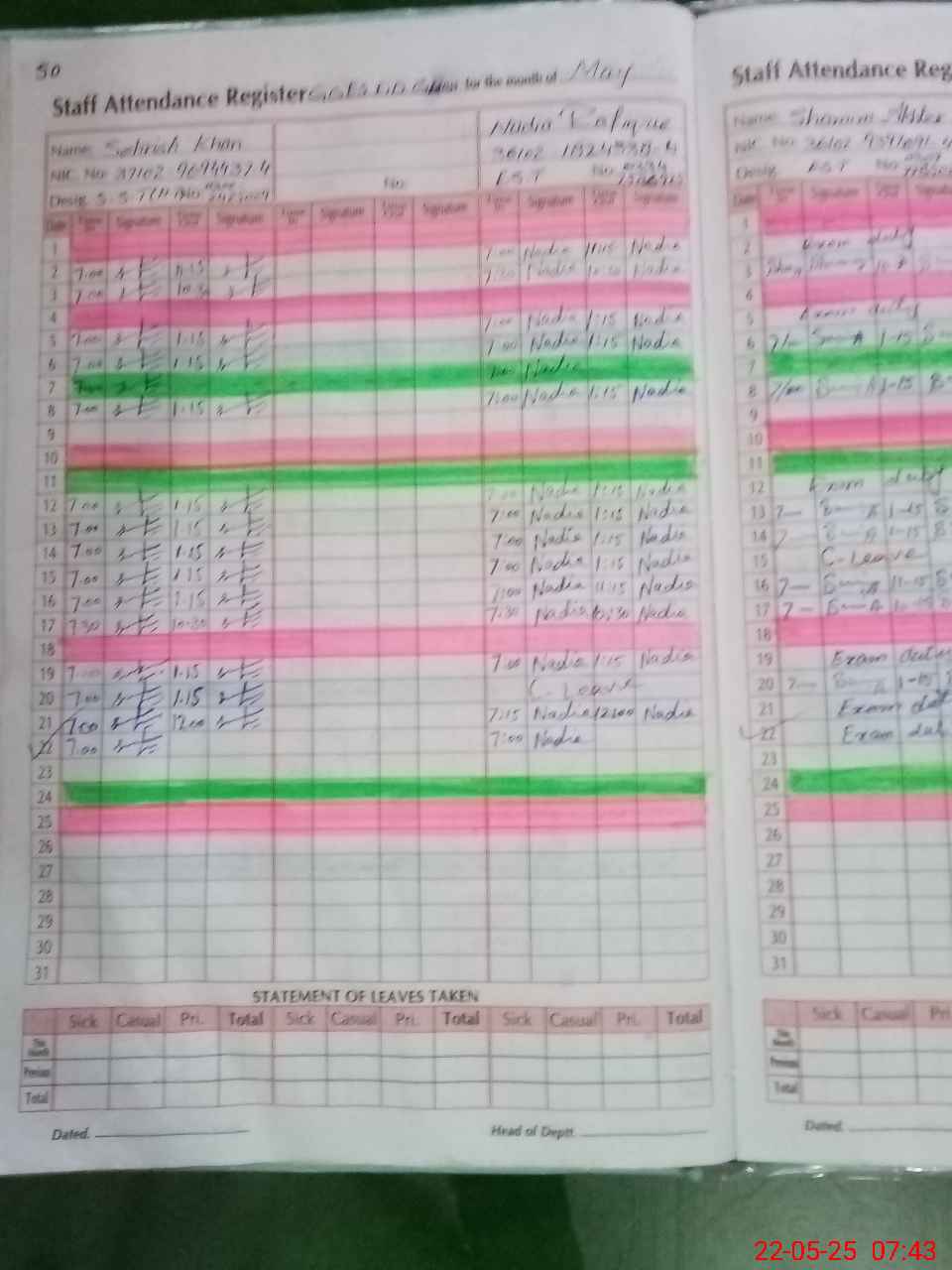 | 36**** | Sh**** Ak**** | EST | Regular | 0 | 0 | 0 | 0 | 0 | 0 | 0 | 0 | 0 | Exam Duty |