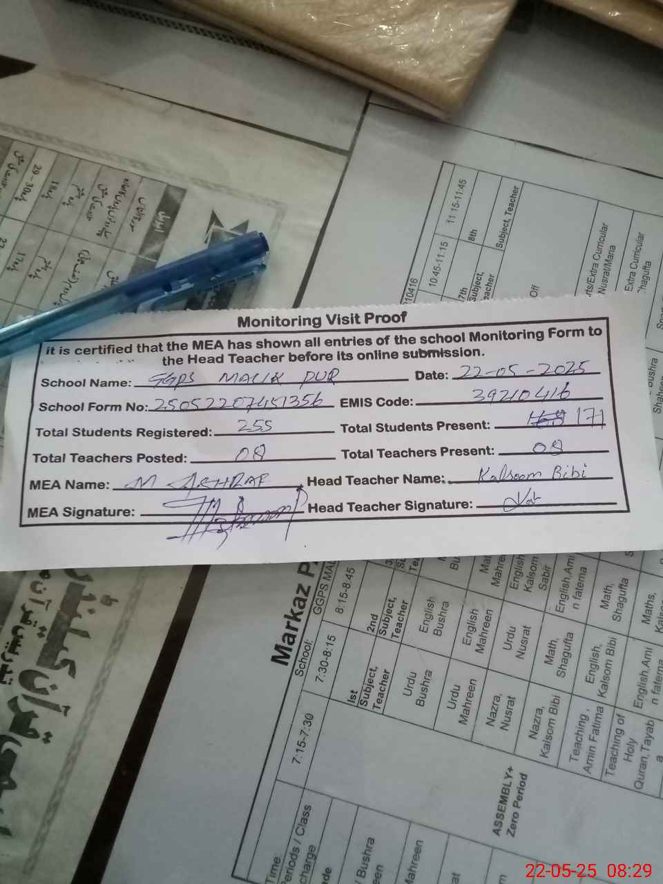 | EMIS Code: 39210416 | Name of School: GGPS MALIK PUR | |||