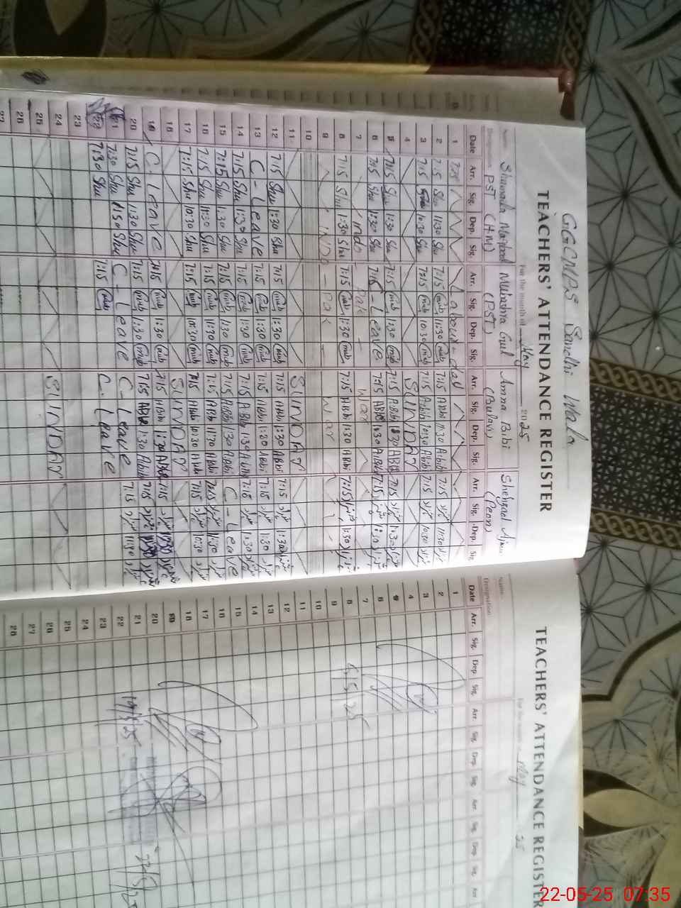 | CNIC | Full Name | Designation | R/C | Absence During Last Calender Month |