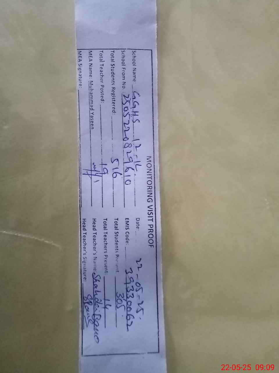 | EMIS Code: 39330062 | Name of School: GGHS CHAK NO.12/1-L | |||