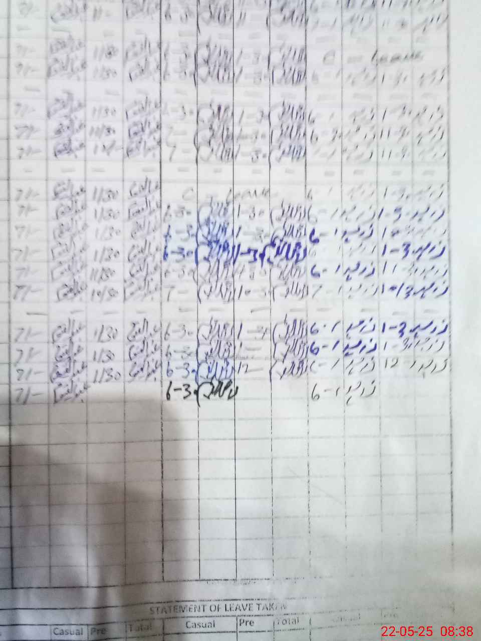 | CNIC | Full Name | Designation | R/C | Absence during last cal. month |