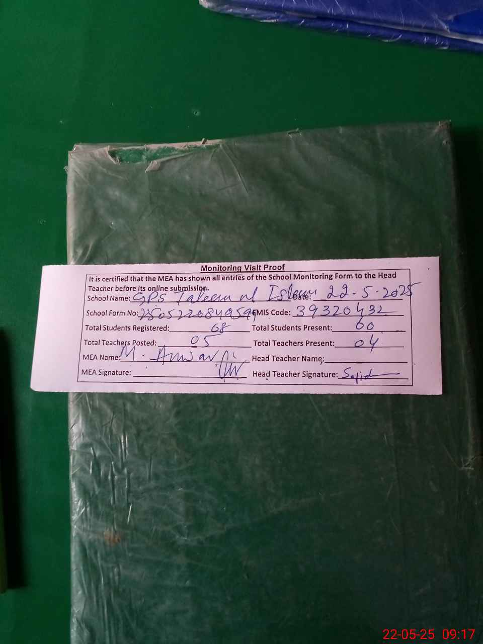 | EMIS Code: 39320432 | Name of School: GPS TALEEM-UL-ISLAM | |||