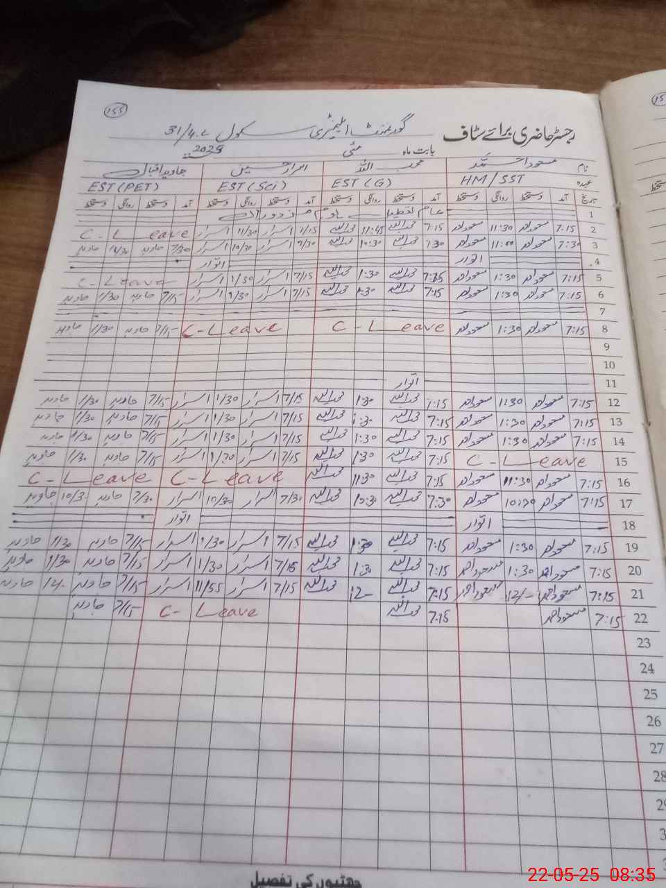 | CNIC | Full Name | Designation | R/C | Absence During Last Calender Month |