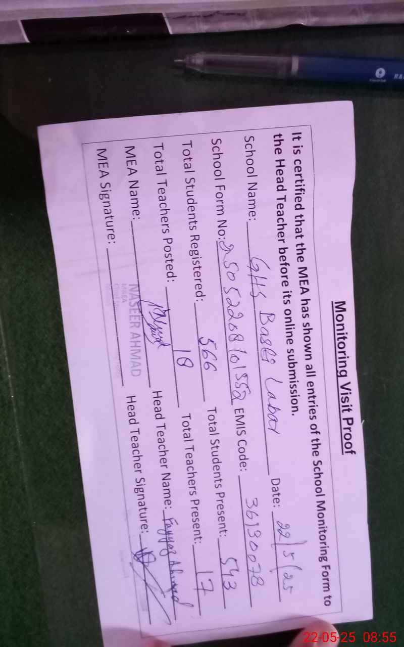 | Certified that this School was Inspected by the Undersigned MEA/DMO Today and the Information Stated Above is as Per Record. | |||||