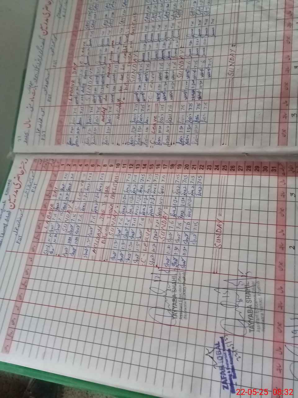 | CNIC | Full Name | Designation | R/C | Absence During Last Calender Month |