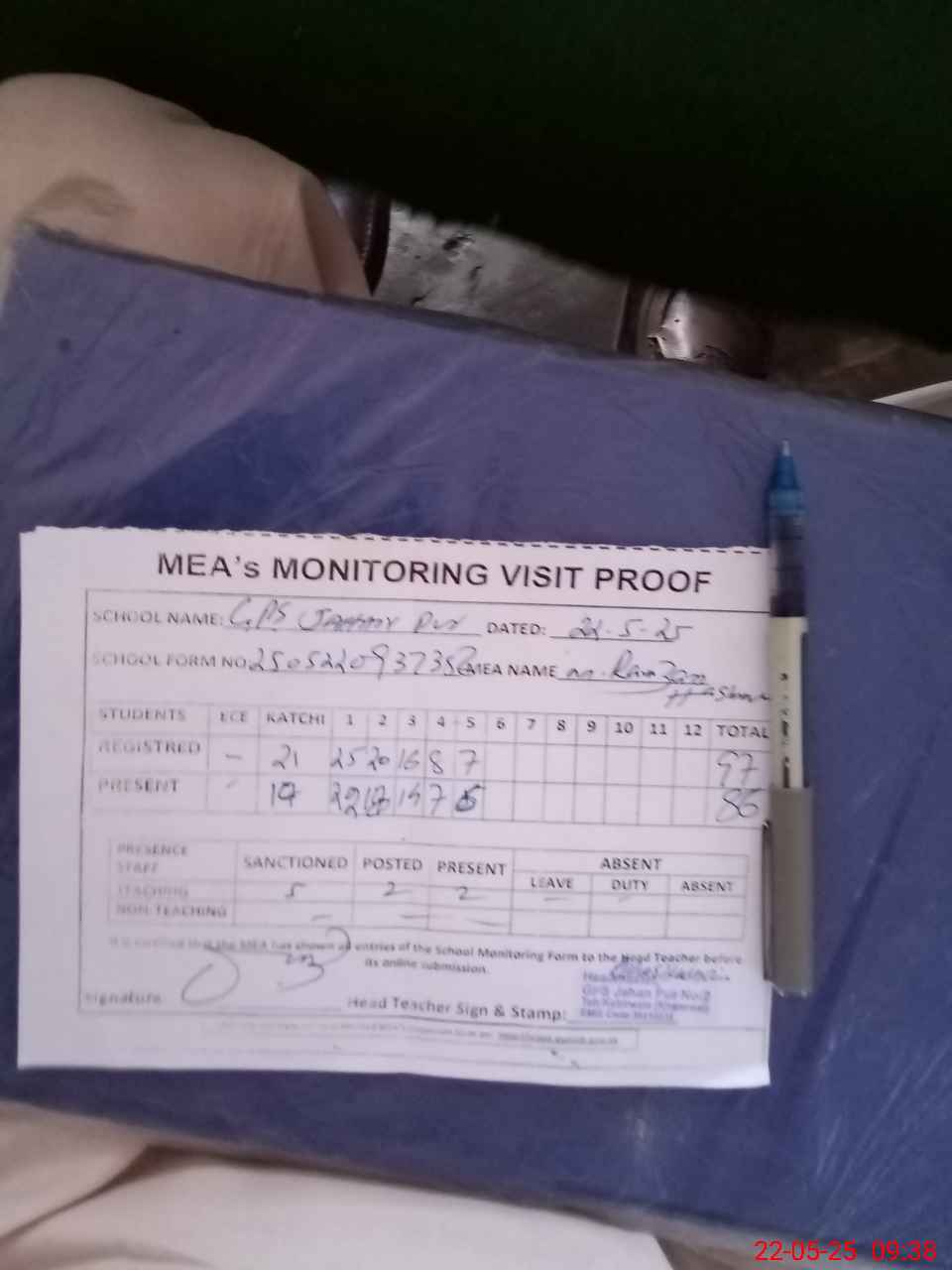 | EMIS Code: 36410535 | Name of School: GPS JAHAN PUR NO.2 P/O NOOR PUR, KABIRWALA | |||