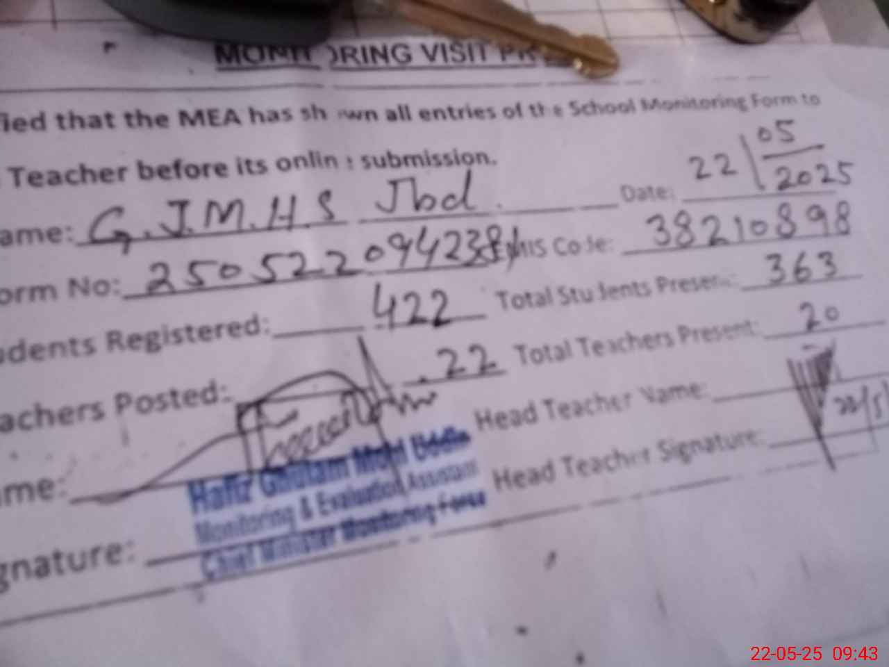 | EMIS Code: 38210898 | Name of School: GHS JOUHAR MEMORIAL JUHARABAD | |||