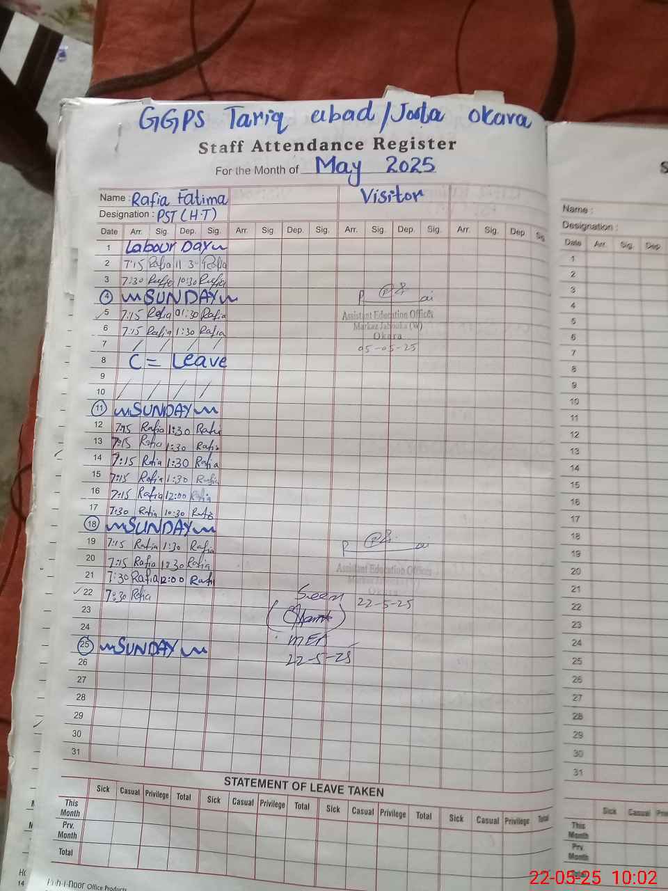 | Name: Ra**** Fa**** Designation: (School Headmaster's/Headmistress's) PST Phone/Cell Number: 03**** |