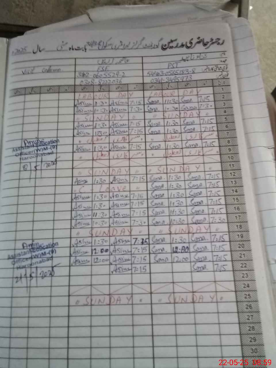 | Name: Sa**** Na**** Designation: (School Headmaster's/Headmistress's) PST Phone/Cell Number: 03**** |