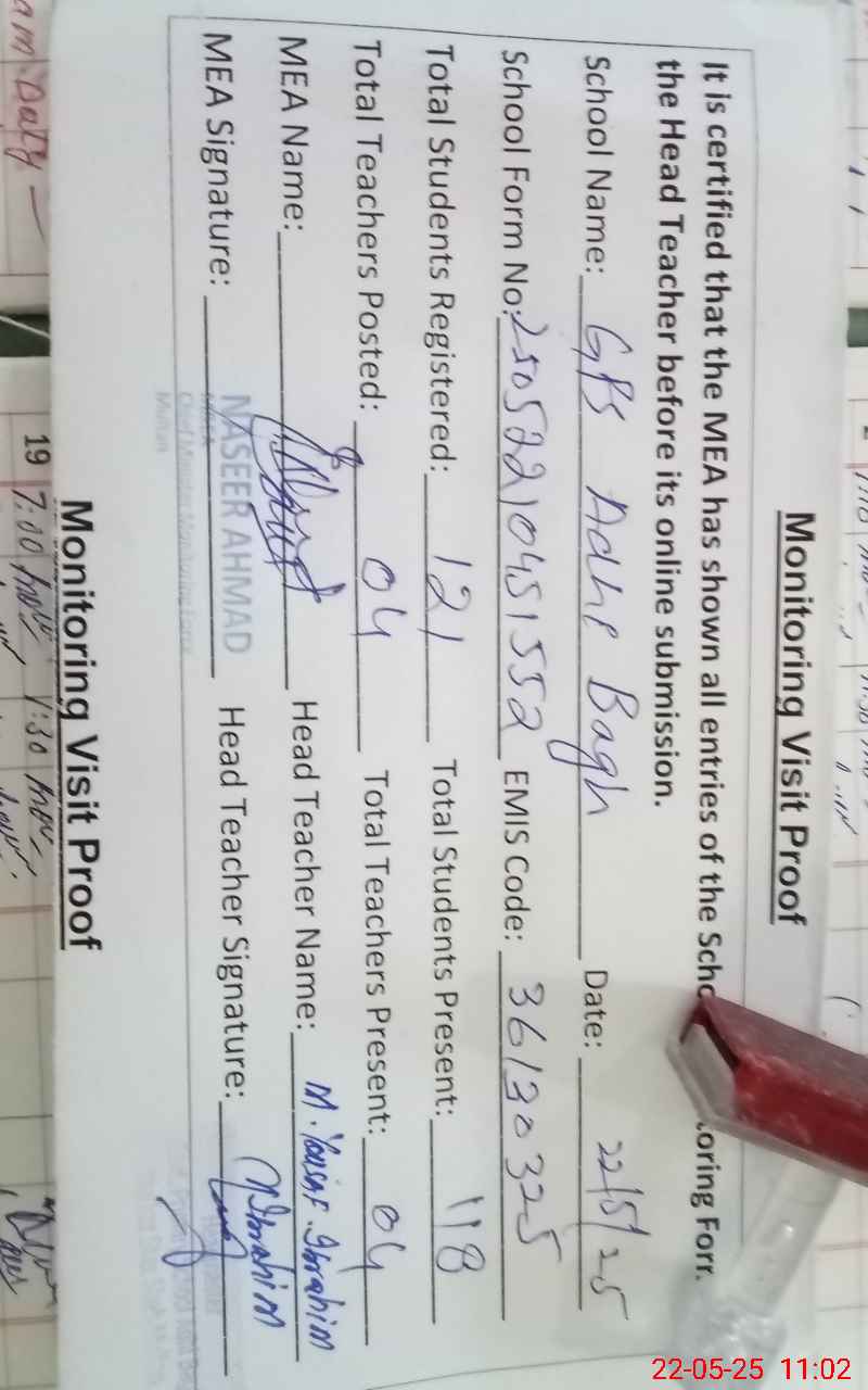 | EMIS Code: 36130325 | Name of School: GPS ADHI BAGH MOZA TARAGARH P/O KHOKHAR | |||