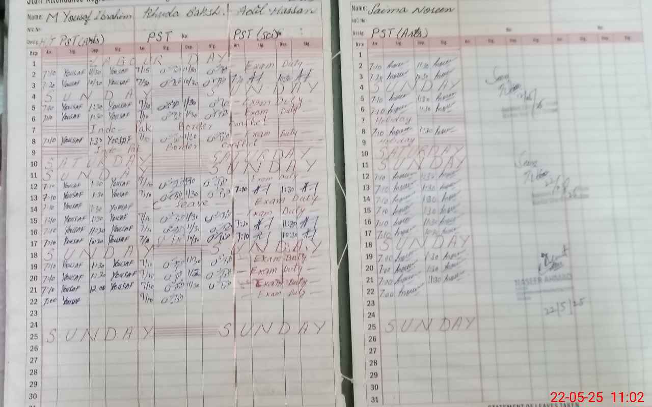 | 36**** | Ad**** Ha**** | PST | Regular | 0 | 0 | 0 | 0 | 0 | 0 | 0 | 0 | 0 | Exam Duty |