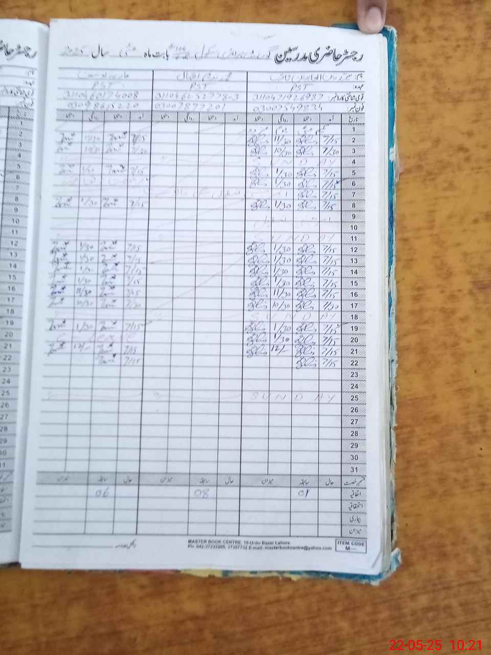 | CNIC | Full Name | Designation | R/C | Absence During Last Calender Month |