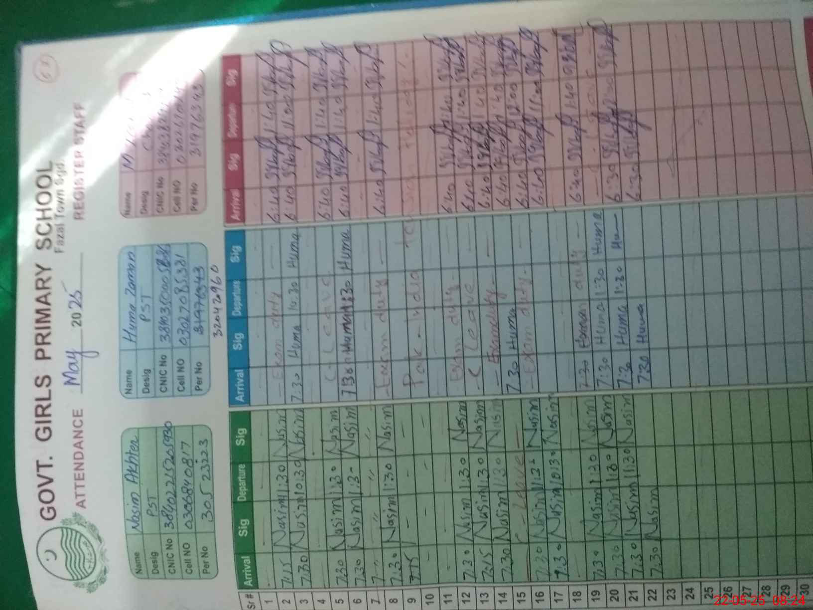 | CNIC | Full Name | Designation | R/C | Absence during last cal. month |